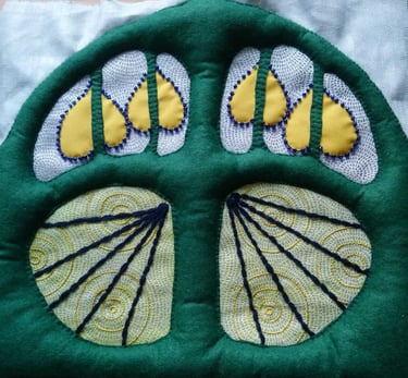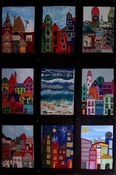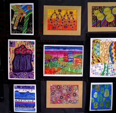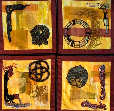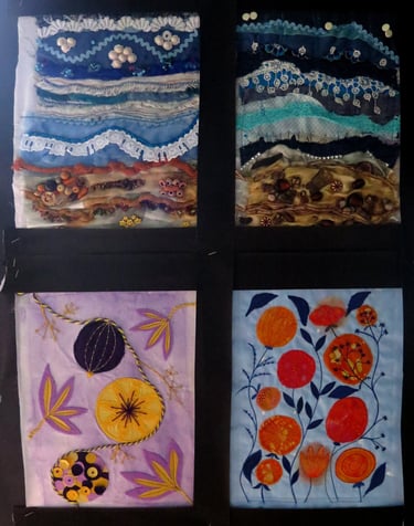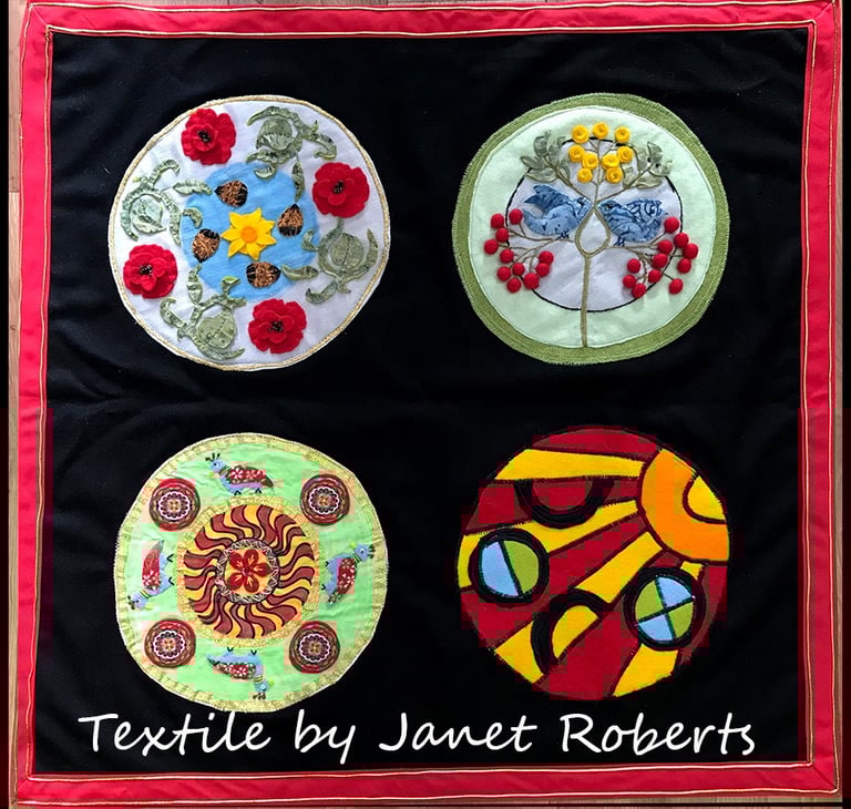 Each student was asked to produce 6 X 6inch squares each containing a circular design